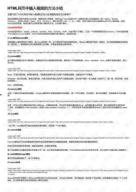 3. 预加载视频:使用`preload`属性指定视频的预加载行为,如`preload=\auto\`表示在页面加载时预加载视频。
