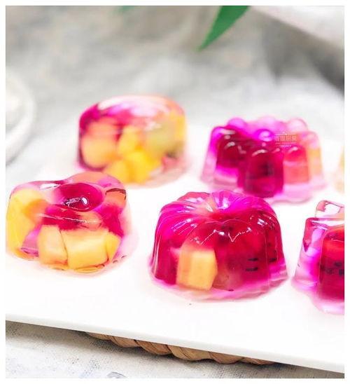 1. 水果果冻:将新鲜水果切成小块,放入果冻液中,制作出色彩缤纷的水果果冻。